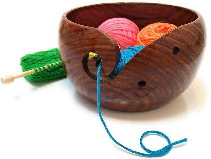 - WOODEN CUT - The wooden wool bowl with high gloss varnish is perfectly designed for both experienced and novice knitters. Each bowl is made of sustainable wood with a wide base, so it won't tip over even with heavy balls of yarn.